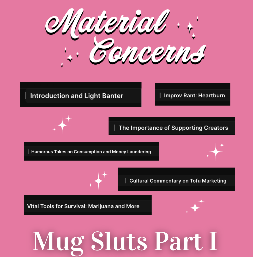We’ve also got two new episodes of Material Concerns because we’re a weekly podcast now, remember?? You can get Part II of these deeply chaotic conversations over on Patreon. Get in there!!