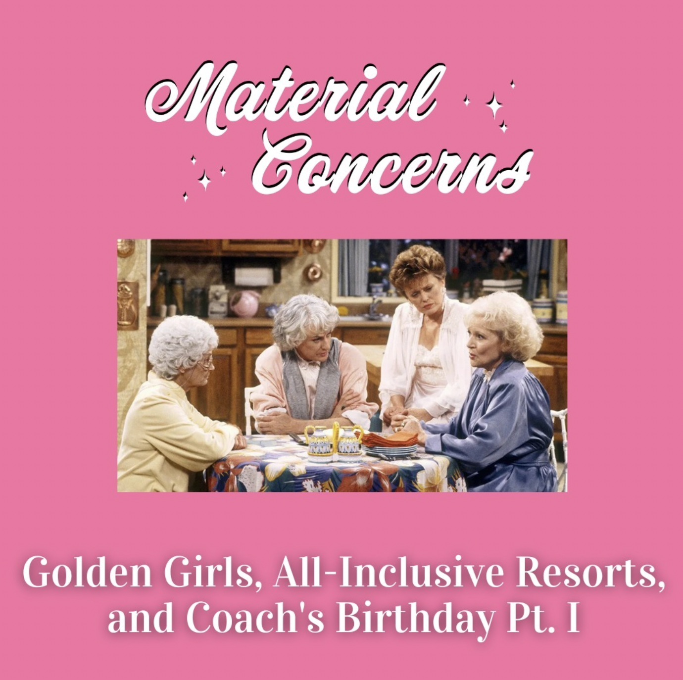 Next up, it’s a new Material Concerns! In this episode, Marcelle and Hannah answer your questions. They talk Golden Girls, Friends, all-inclusive resorts, and Coach's birthday (she’s a Sag)! As a reminder, for just $5 USD/month you'll get part two, our extensive backlog, ad-free episodes, oh my!!