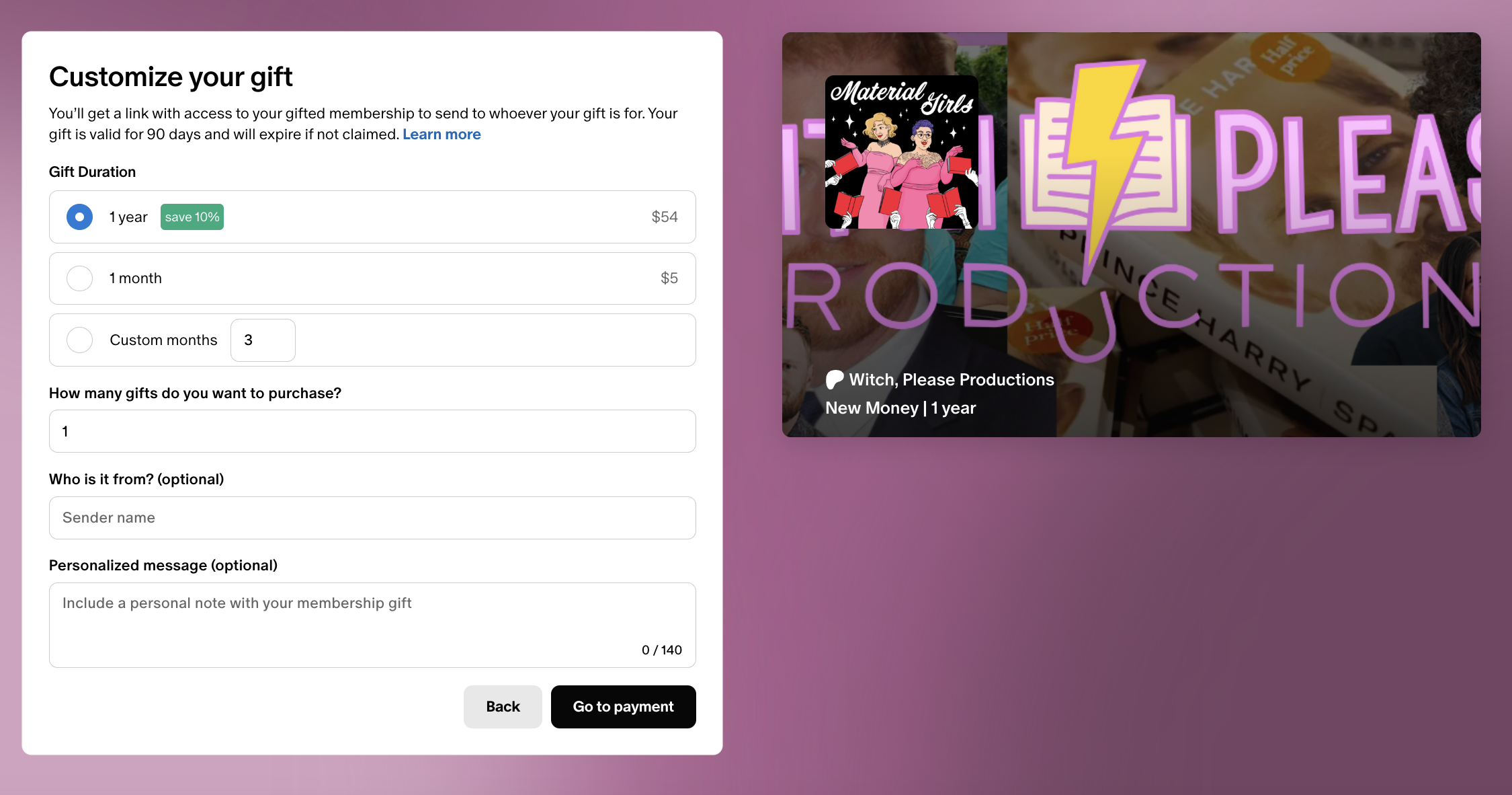 Did you know you can gift Patreon Membership? Well you can! This holiday season, may I humbly recommend gifting Witch, Please Productions membership to your loved ones? Sure, I’m biased, but I genuinely think this is a brilliant gift for any number of people in your life. For example, a Patreon Membership could be: