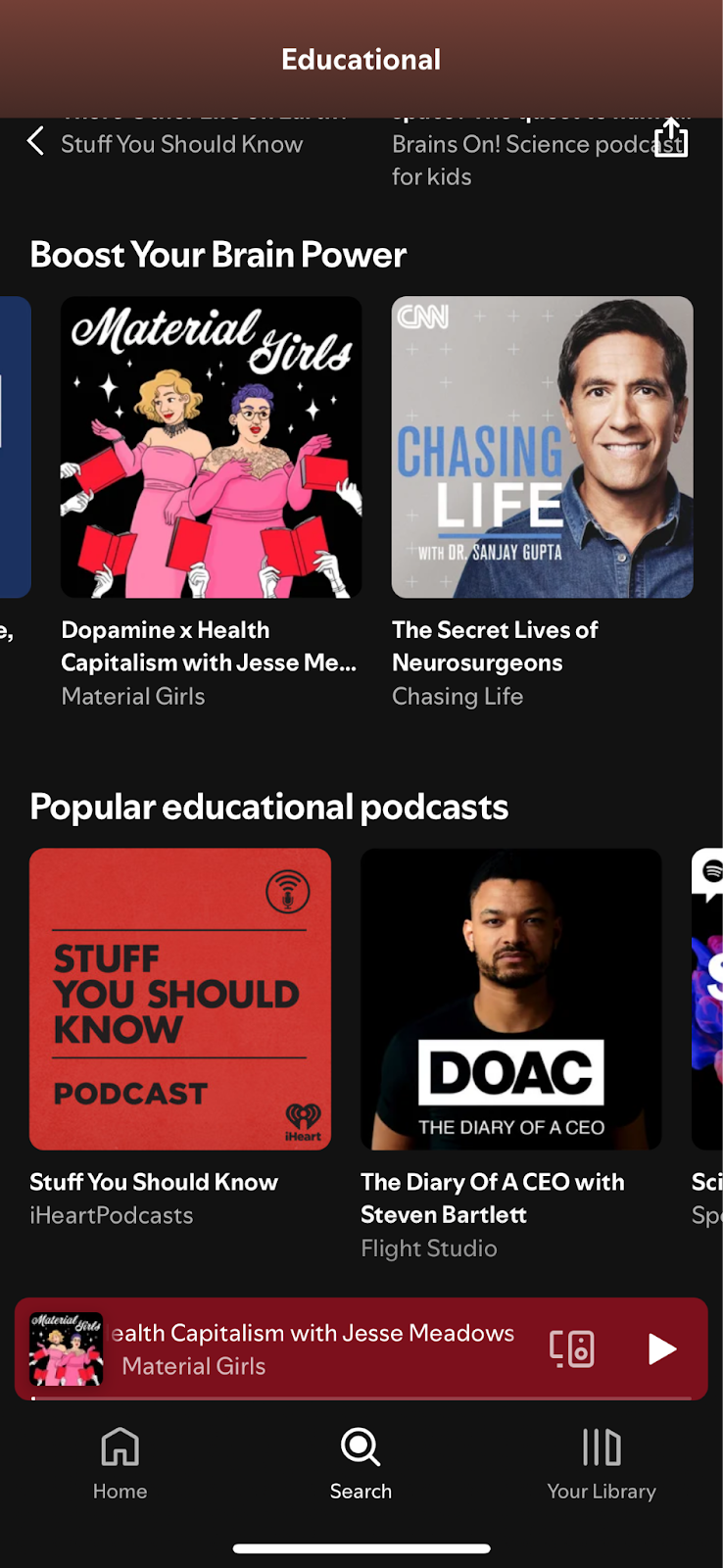 We know who’s getting rich off dopamine discourses, and it’s Andrew Huberman. If like me you’re feeling ready to ruin some wellness influencers’ days, then please enjoy this image of our Dopamine episode being featured on Spotify’s “Boost Your Brain Power” shelf.
